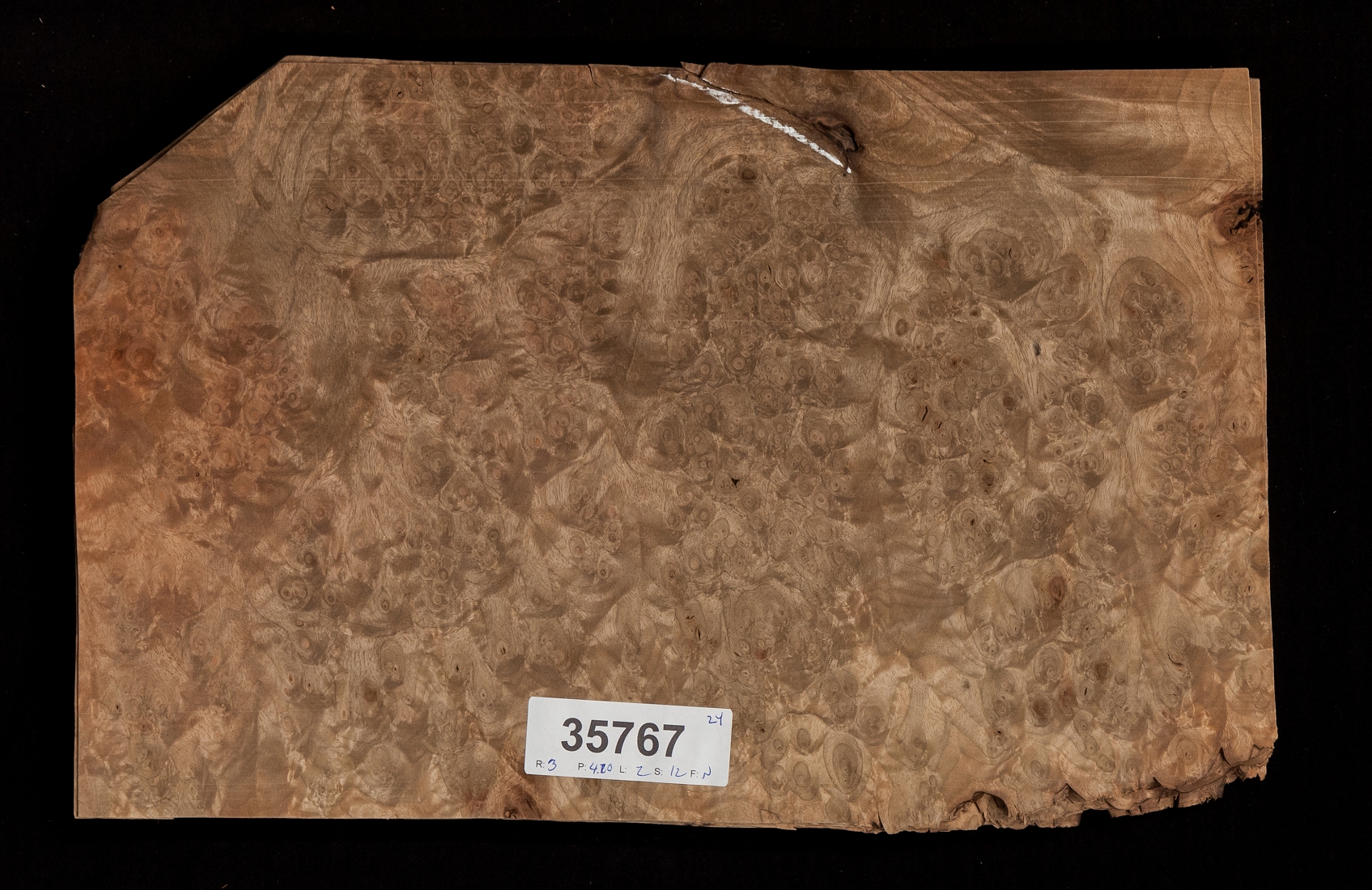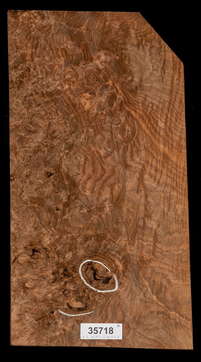 European walnut burl doesn't show its true color and figure until a finish is applied. Our customers often send messages about the incredible contrast that happens once a penetrating clear finish is applied. You've got to see it to believe it. |